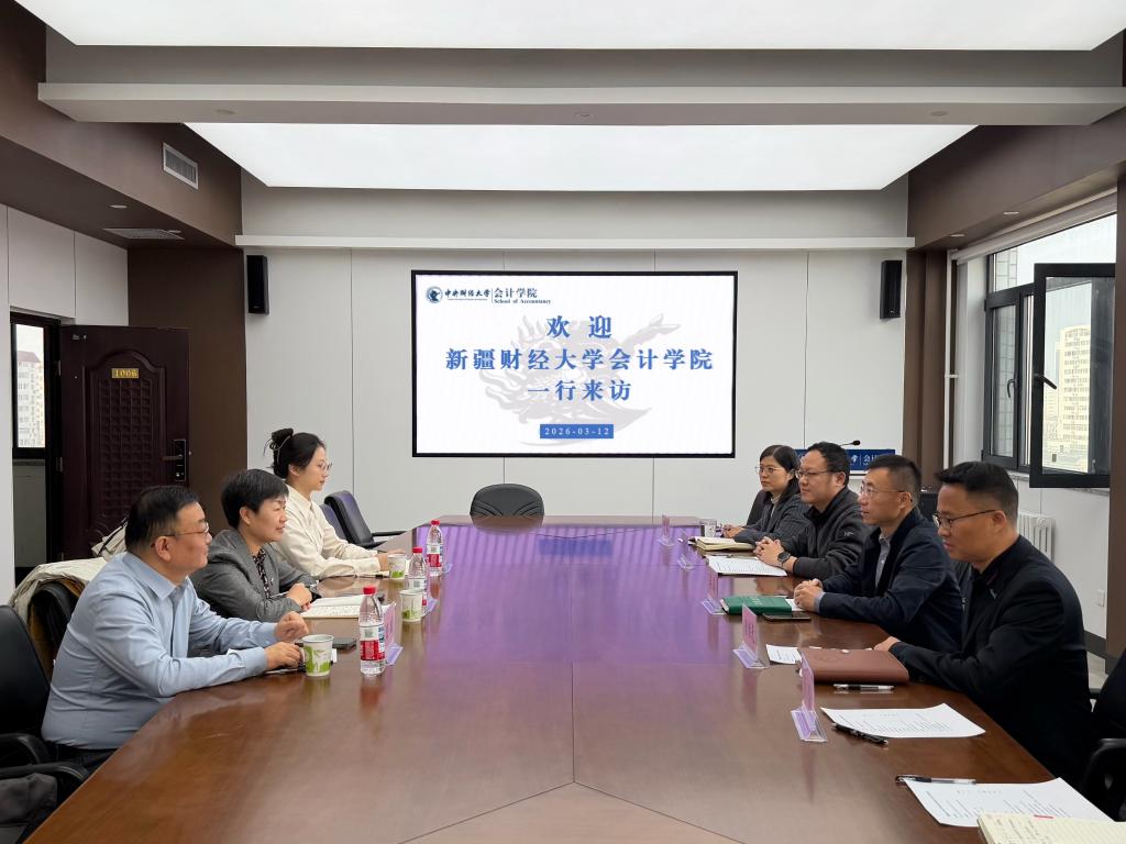 2026年3月12日上午,新疆财经大学会计学院党委副书记、院长陈维青,创新实践中心主任田斌,MPAcc中心主任庄莹一行来访会计学院。会计学院院长吴溪,副院长江轩宇,研究生工作办公室、培训工作办公室主任朱继光,教学科研管理办公室主任单畅参加此次交流会。