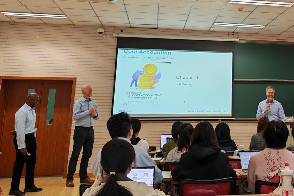 Ash Noah、Stephen Flatman及Nate Fredrickson和学院老师们也就人工智能与会计改革、数智化课程设计、师资培训、学生竞赛、专业博士培养等议题进行了深入交流。此外,英国皇家特许管理会计师公会一行还深入到我院刘俊勇教授的本科生管理会计的课堂之中,与学生进行了深度的交流和互动,为同学们答疑解惑,分享数智化时代下的管理会计前沿思想和变革。