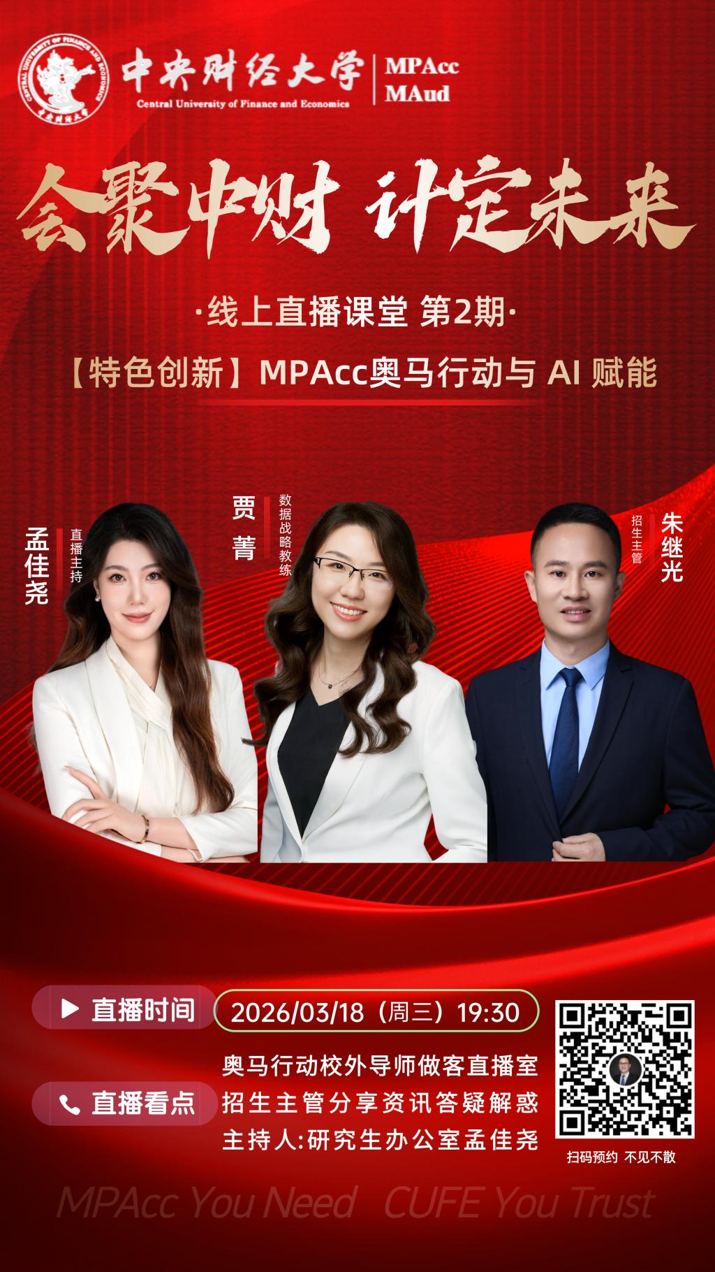 中央财经大学MPAcc团队联合奥马行动校外导师,直面解读“奥马行动”,探讨AI赋能MPAcc人才培养,实时互动,直面疑惑,欢迎参加!