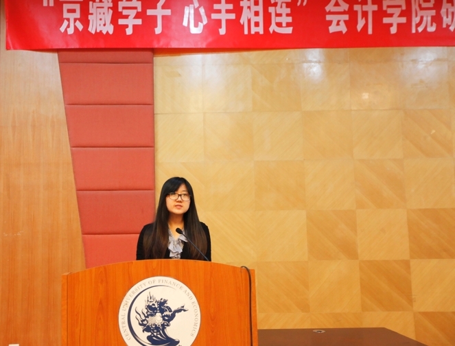 会计学院研究生志愿者代表魏巍同学在发言中,充分表达了大家参与该志愿活动的热情和希望,她衷心感谢双方大学的领导和老师们的艰苦努力,能让他们在紧张的研究生学习中学到更多的东西,她代表志愿者们承诺,一定尽己所能,用良好的沟通能力和影响力与西藏结对学生积极互动,共同成长。